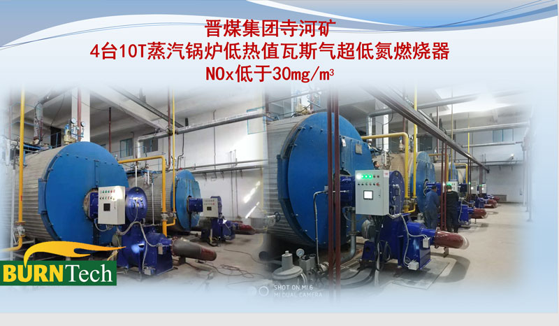 4台10T蒸汽锅炉低热值瓦斯气超低氮燃烧器